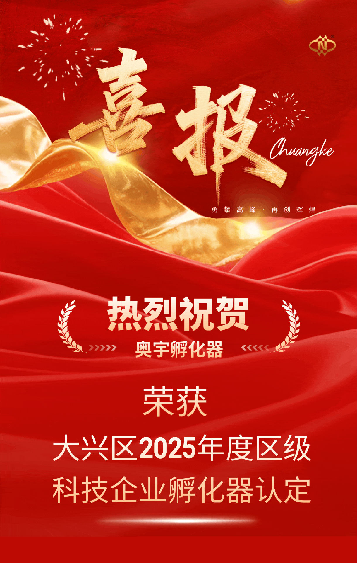 此次获评“大兴区级科技企业孵化器”不仅是对奥宇孵化器工作的认可,更标志着奥宇在产业孵化、资源链接和创新服务等方面已达到行业标杆水平,将专业化服务提升至新高度。