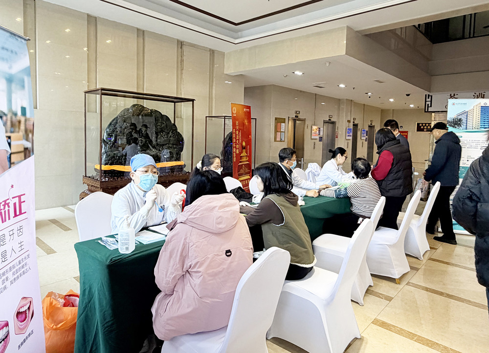 专家云集,答疑解惑:综合科的专家面面俱到,从常见病的防治理念到日常保健的科学方法,提供高屋建瓴的综合性指导;皮肤科专家则针对困扰多时的过敏、湿疹等问题,给予抽丝剥茧的分析与量身定制的护理良方;口腔科的医生细致检查每一处潜在隐患,将牙周病的预防知识与正确的刷牙方法倾囊相授,让大家深刻体会到“齿间无小事”的真谛。 一位刚完成咨询的园区企业员工欣喜地表示:“在园区里就能享受到三甲医院级别的专业咨询,这样的贴心服务实在太难得了!”整个上午,大堂内始终暖意融融。医护人员们专注并耐心地解答了前来咨询人员的各种问题。