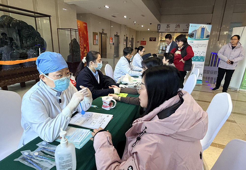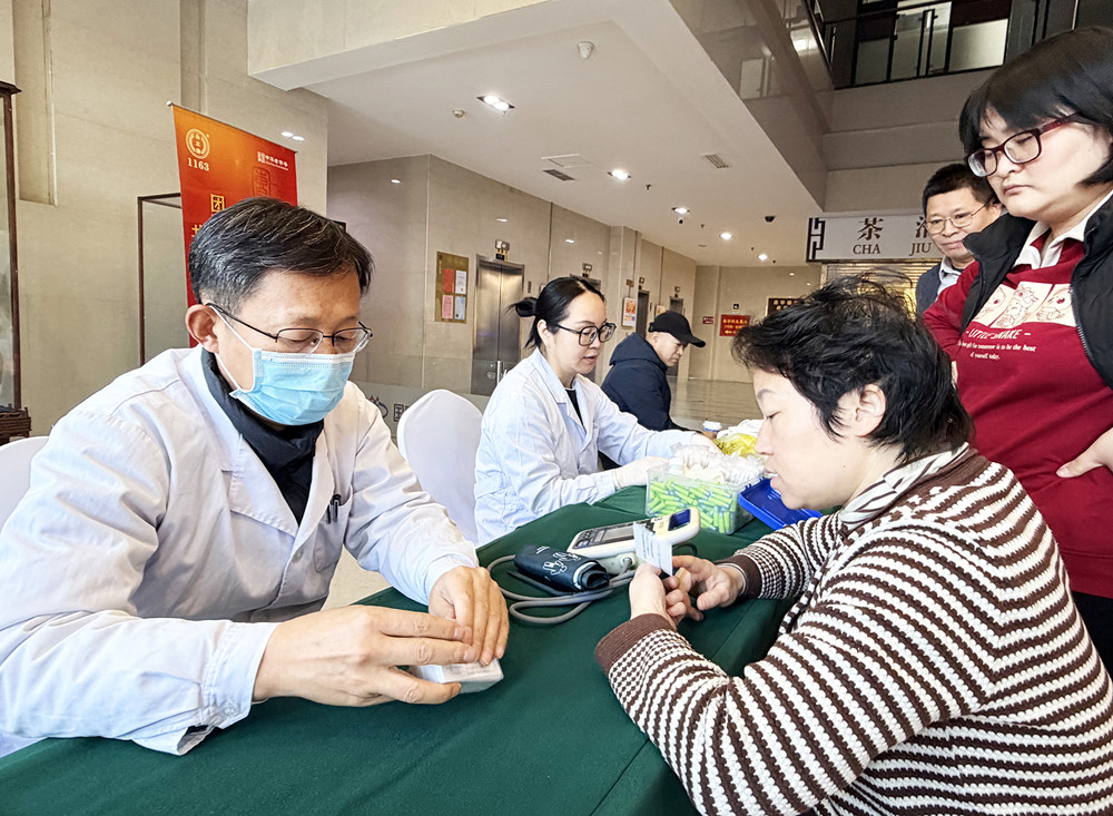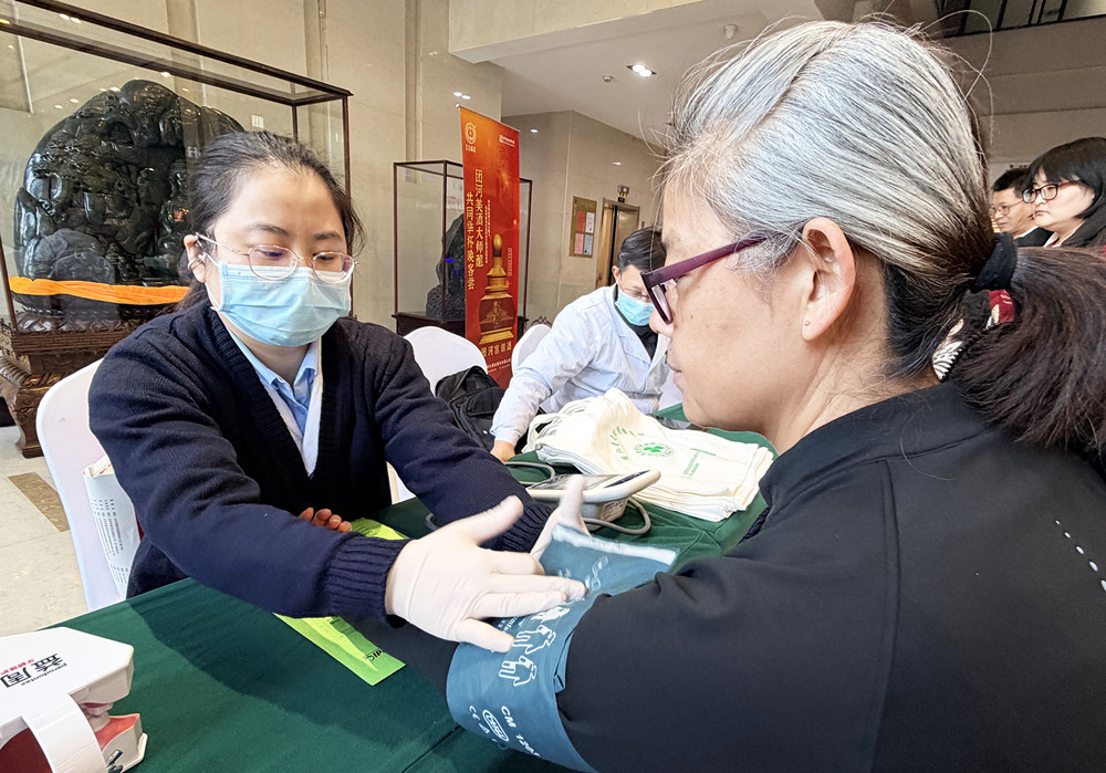 活动在工作人员引导下井然有序进行。前来咨询问诊的园区职工络绎不绝。本次义诊绝非流于形式,而是旨在为拼搏奋斗的创业者与职场人构筑一道坚实的健康防线。 健康筛查,洞悉于微:在基础筛查区,医护人员一丝不苟地为每一位参与者测量血压、血糖,让大家对自身状况“心中有数”。