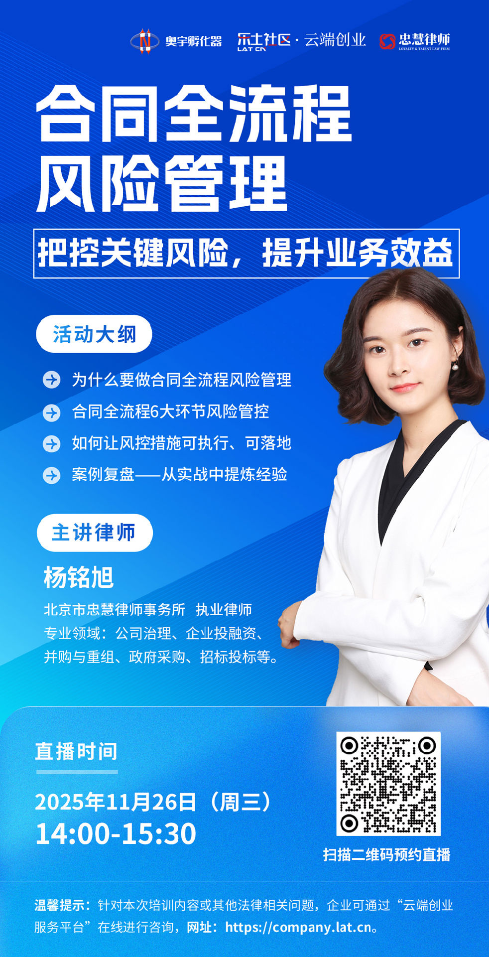 直播预告 | 合同全流程风险管理:“把控关键风险 提升业务效益”培训