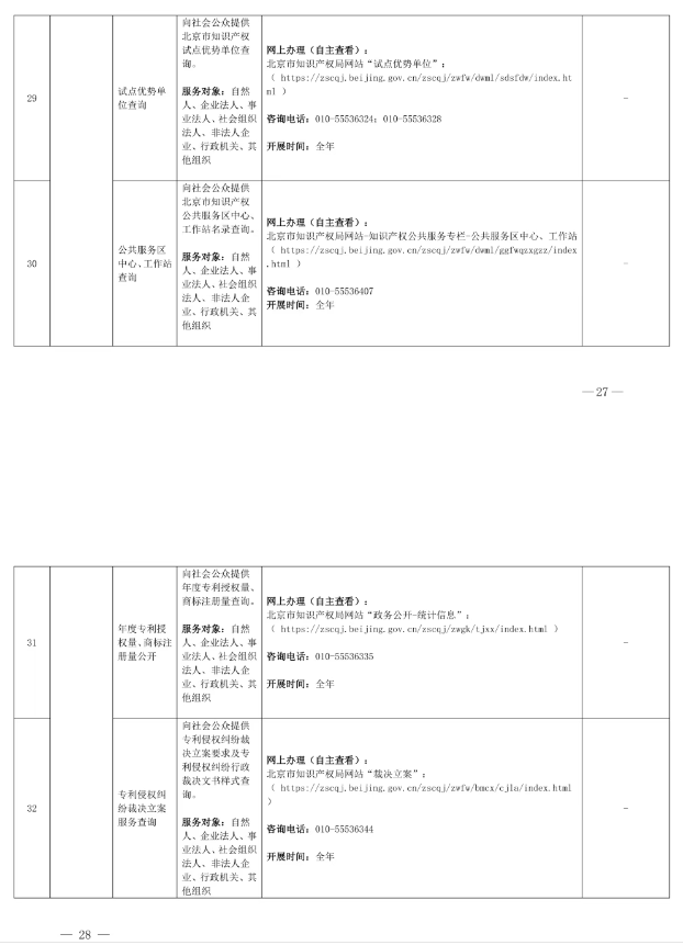 北京市知识产权局公共服务事项清单(第二版)